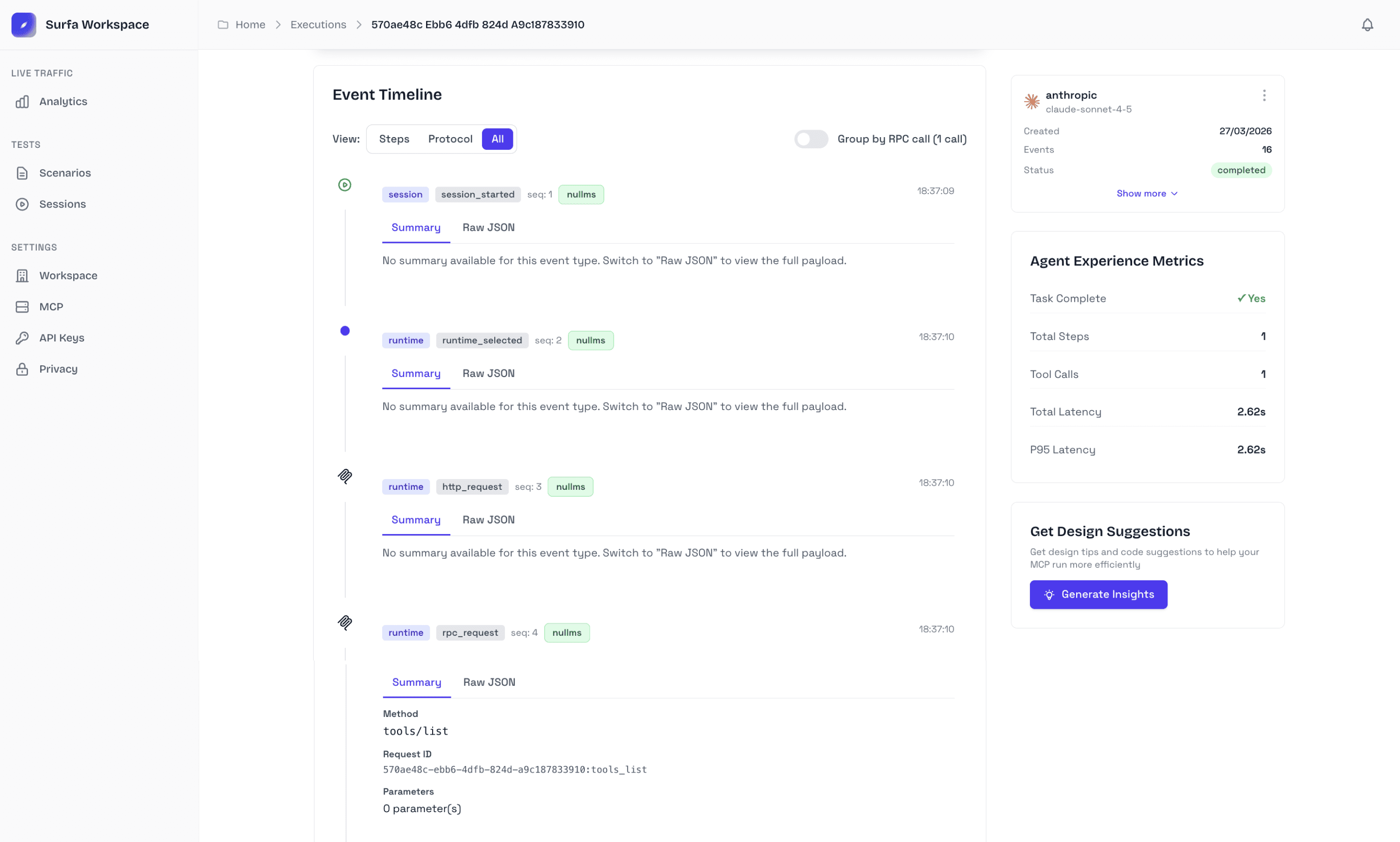 Surfa helps you test and validate how AI agents use your MCP. You can simulate agent scenarios, inspect tool usage, and identify failures before deploying to production.